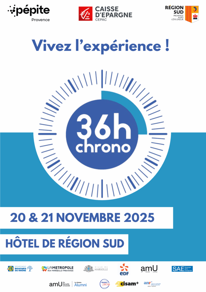 Êtes vous prêt à travailler pendant 36h (jour et nuit) en équipe pluridisciplinaires et mixtes autour d’une thématique de création d’entreprise et tout cela enfermé à l’Hôtel de Région Sud ?