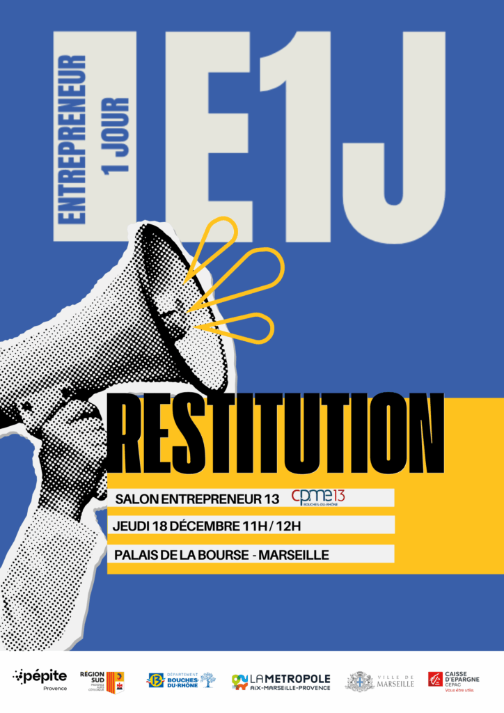 - Venir témoigner et/ou écouter les témoignages en compagnie de votre entreprise lors du salon Entrepreneur 13 à Marseille le 18 décembre.